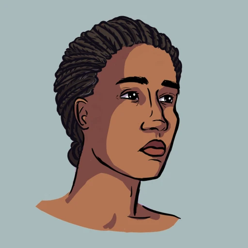Mid-twenties, medium/small height and build, brown skin, brown eyes, neatly braided black hair with a few silver strands.