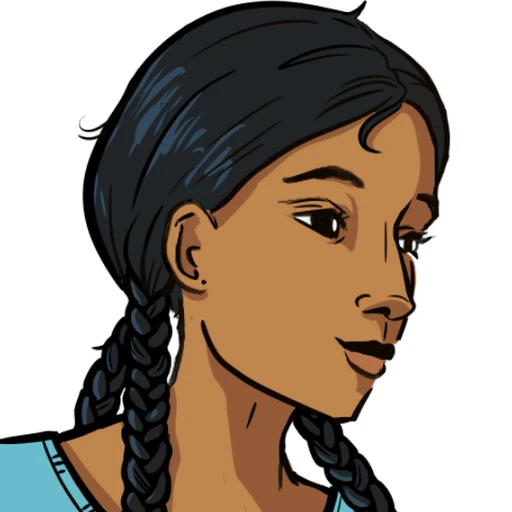 Young teenage girl with long dark hair in braids.